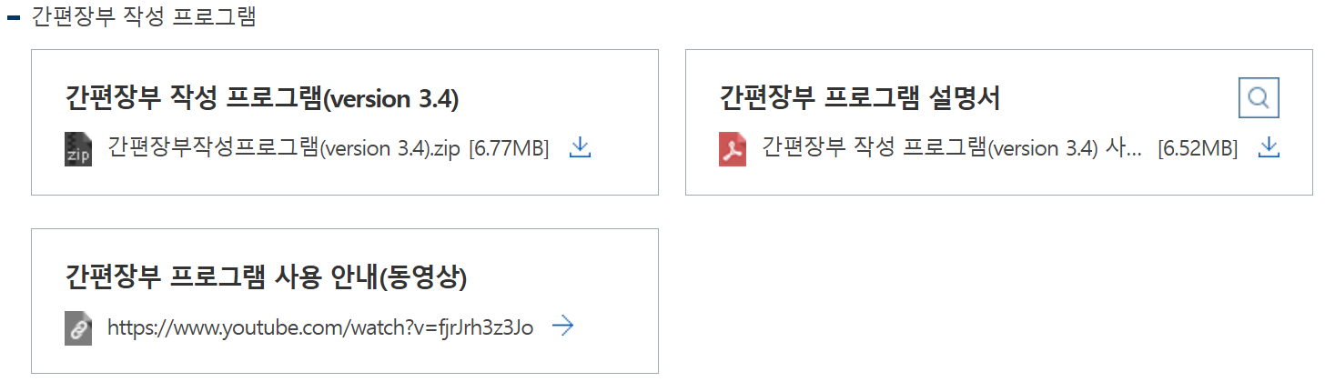 국세청 홈페이지에는 간편장부 작성을 위한 안내와 관련 프로그램, 설명서, 엑셀 및 한글 서식이 안내되어 있습니다.